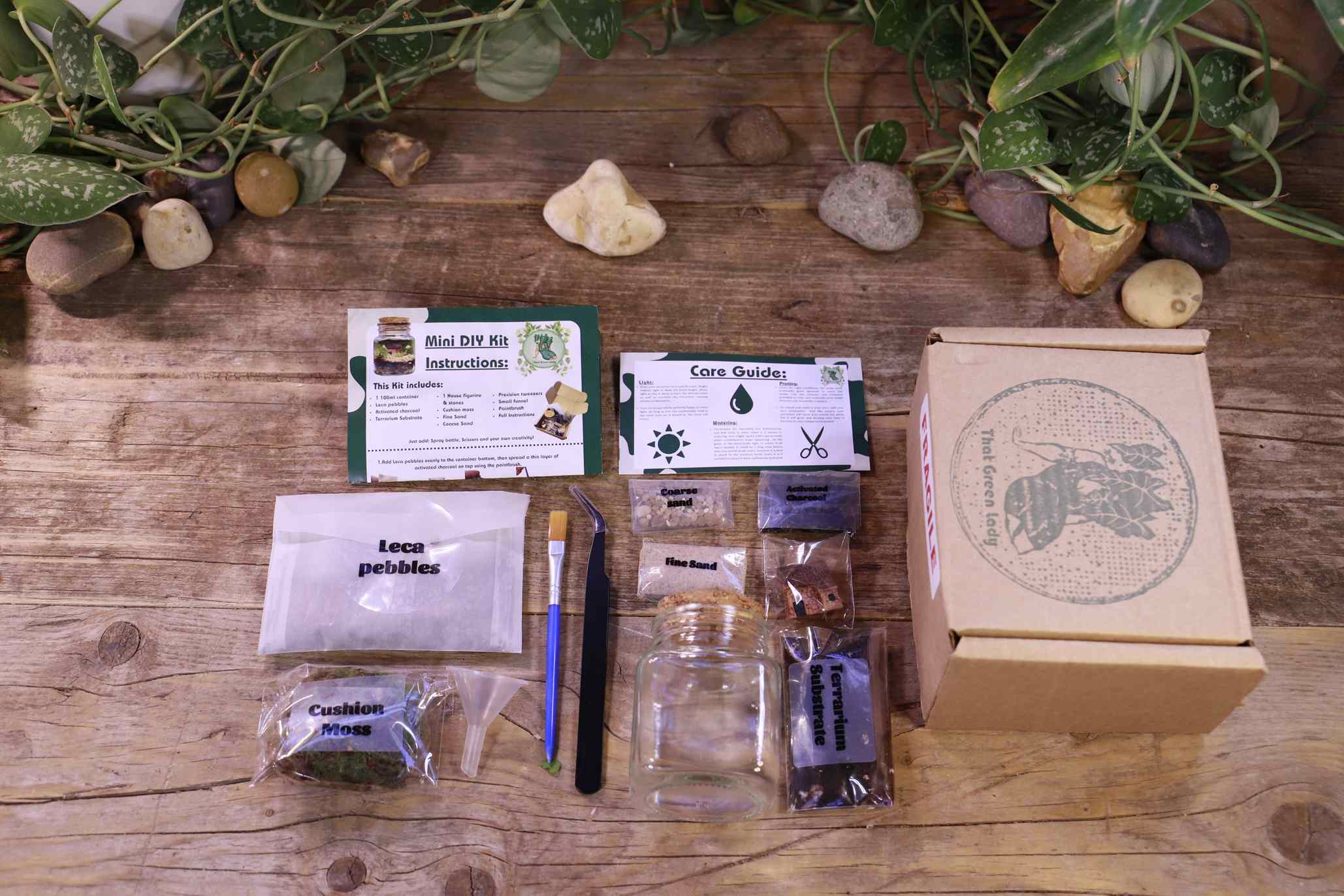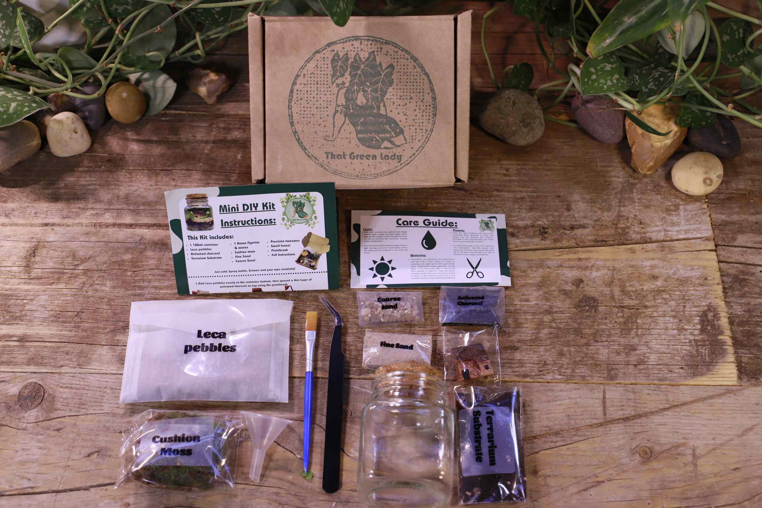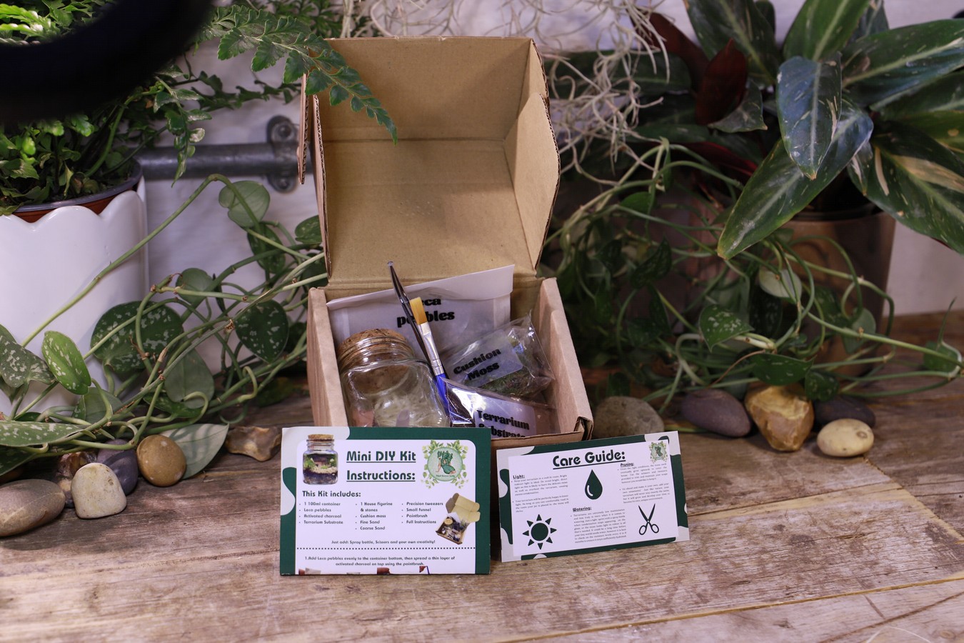 Each kit is hand‑prepared in Bournemouth using sustainable materials wherever possible. With clear, simple instructions, you’ll learn how to layer substrates, place hardscape, and introduce vibrant moss to create a thriving miniature world.